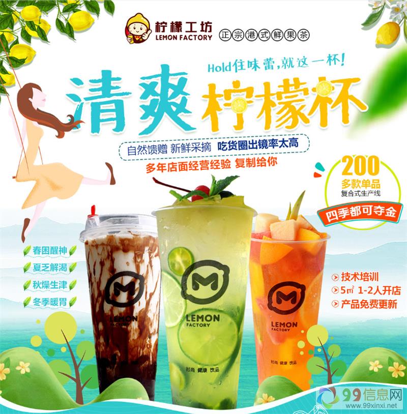 港式鲜果饮品店加盟连锁,柠檬工坊,潮流饮品,美味诱惑,手工制作现做现卖,六大系列,点燃消费热www.99xinxi.net。柠檬工坊平民价格,大众喜爱,而且口感丰富,产品实时更新,更能随时抓客心。同时开启线上线下立体营销,好创收www.99xinxi.net99信息网。并且操作简单,上手快,省心经营,只需1人就可经营,10㎡起就可开店。柠檬工坊轻小投资开启创业路,还拥有多项VIP扶持,为投资者扫清创业障碍9.9.x.i.n.x.i.n.e.t。
